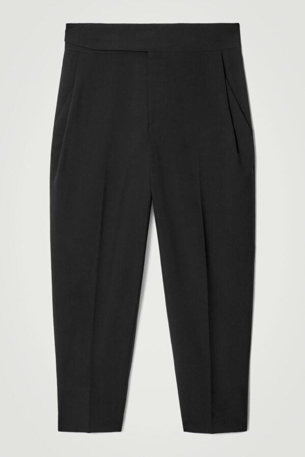 RELAXED BELTED WOOL-HOPSACK TAPERED TROUSERS